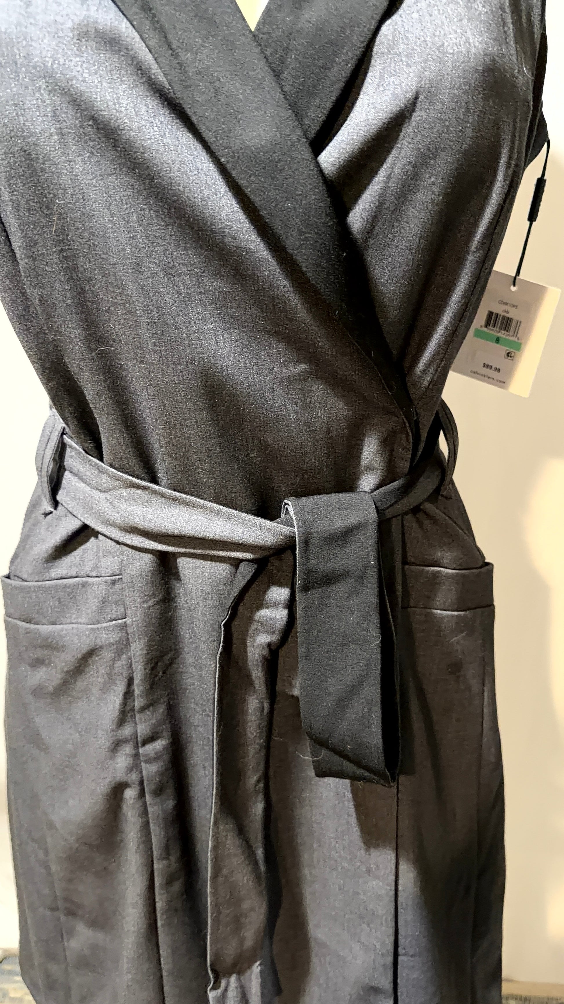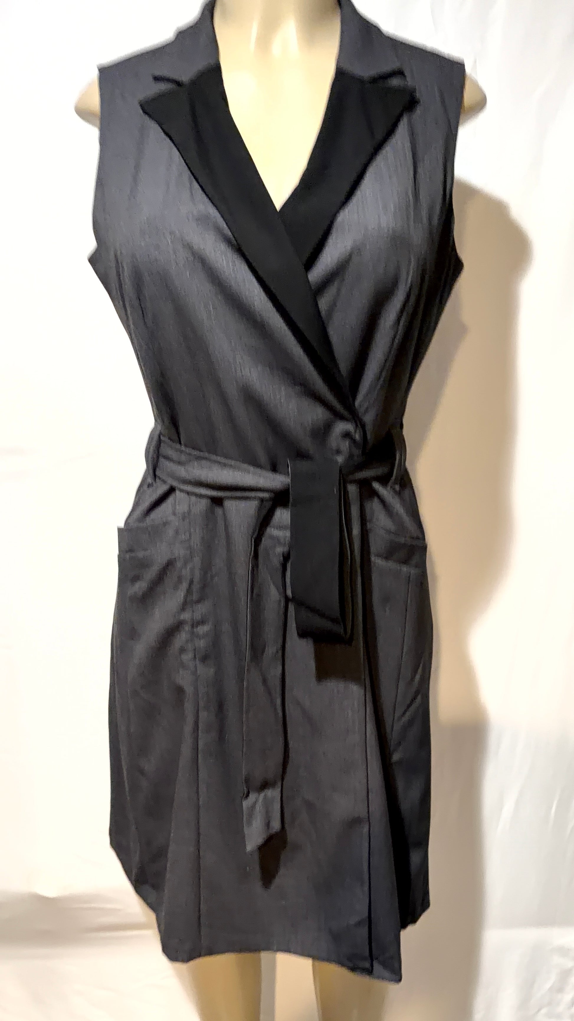 The Calvin Klein Suit Dress is a stylish and versatile option for any occasion. This sleeveless, V-neck dress in a solid multicolor pattern features a zipper closure and a knee-length hem. Made from a blend of polyester, spandex, and rayon, this dress is perfect for parties, casual outings, workwear, or business events. The wrap-style design with a collared neckline and strap accents adds a touch of sophistication to this designer dress, making it a must-have for your wardrobe.