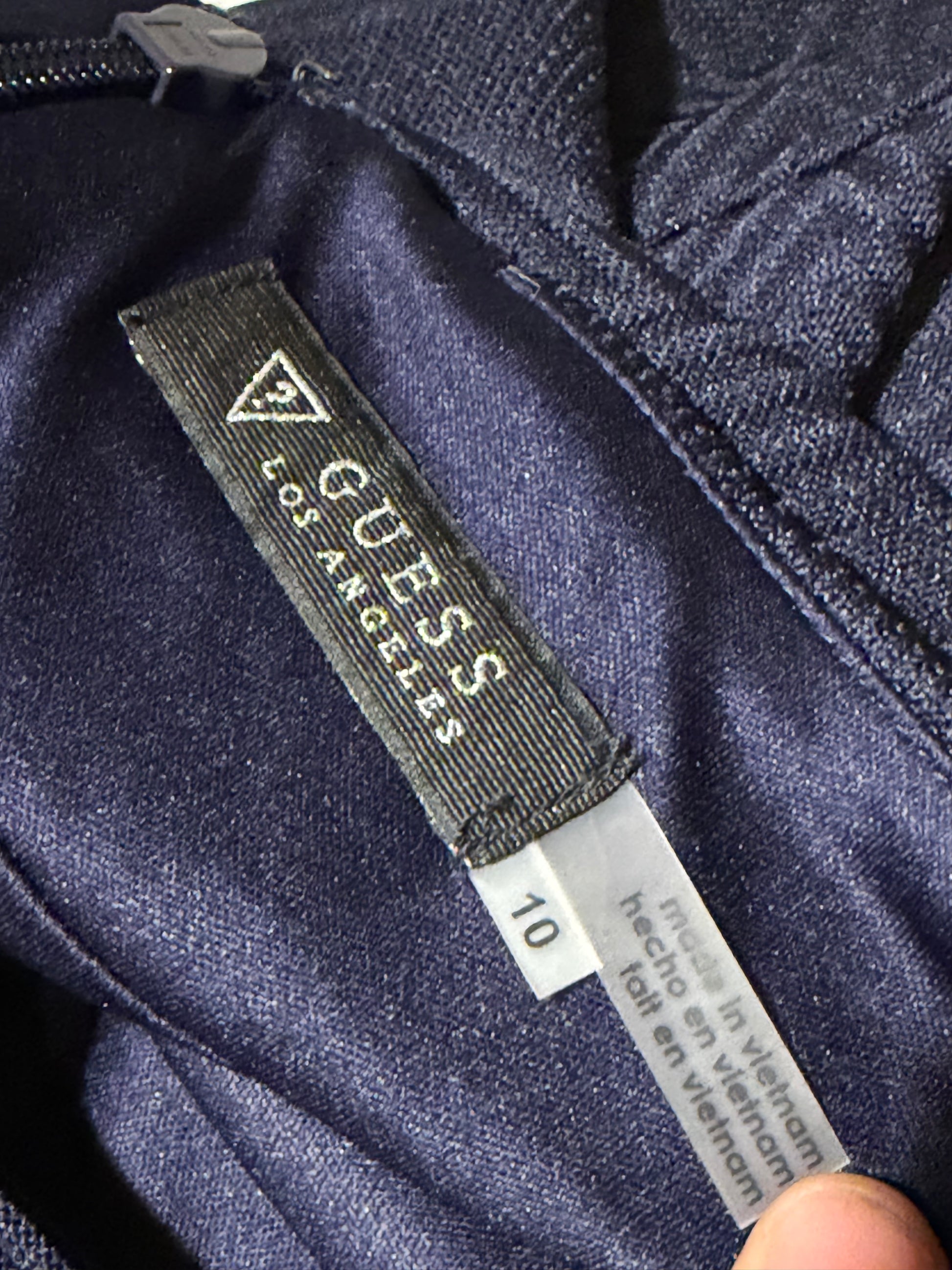 This GUESS dress in size 10 features a geometric blue pattern with a sweetheart neckline and off the shoulder sleeves, making it perfect for various occasions such as parties, casual outings, or formal events. Made of polyester material, this knee-length bodycon dress has a zip closure and stylish accents like straps and a zipper detail. The classic theme and vibrant blue color make it a versatile and fashionable choice for the summer, fall, and spring seasons. Perfect for women who appreciate a trendy and comfortable dress that is both chic and effortless to wear. |
