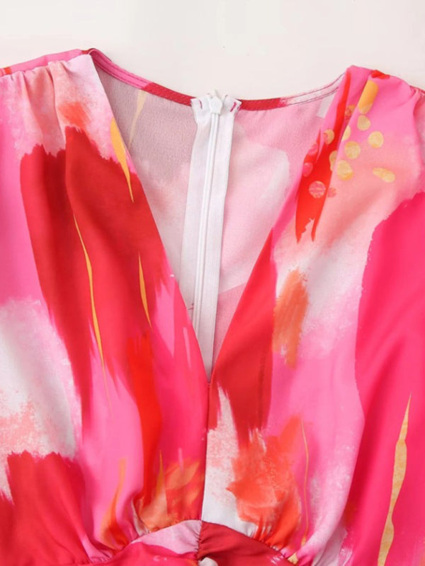 Pleated Print Long Sleeve Dress