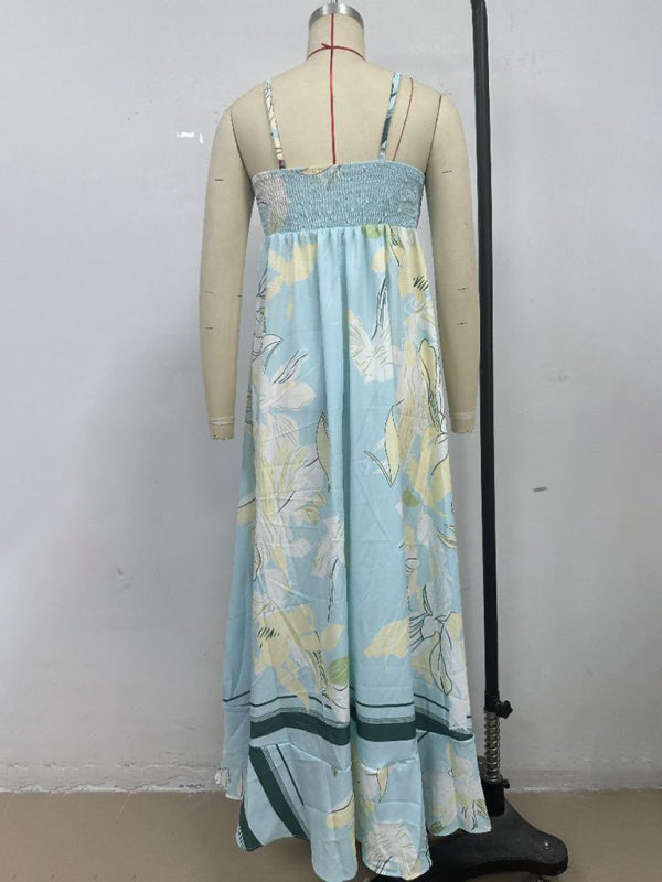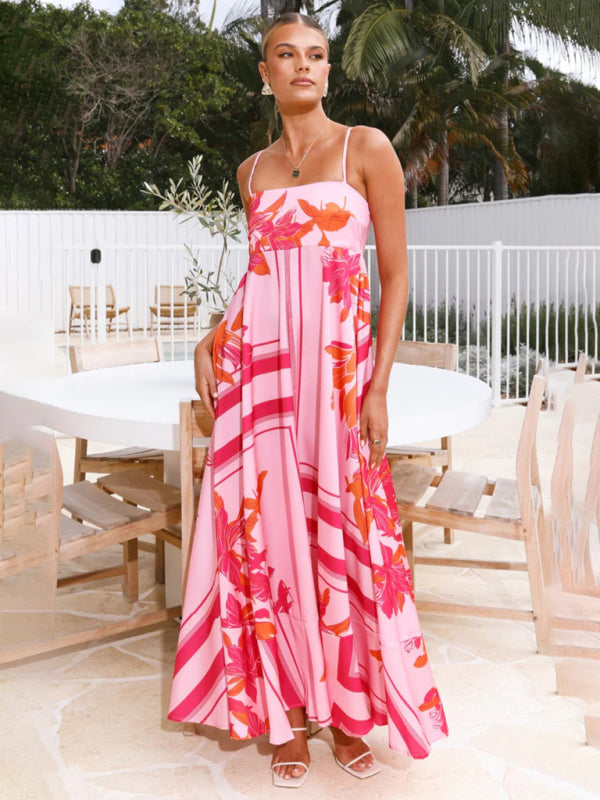 Striped print flared suspender dress